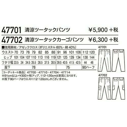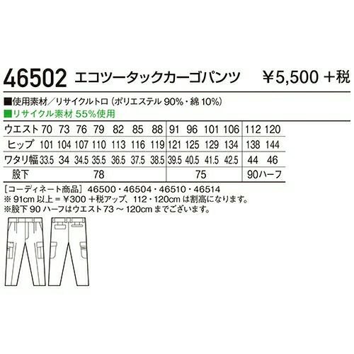 自重堂 作業服 46502 ツータックカーゴ 春夏 メンズ 作業着 ポケット付き ボトムス ワークウエア カーゴパンツ