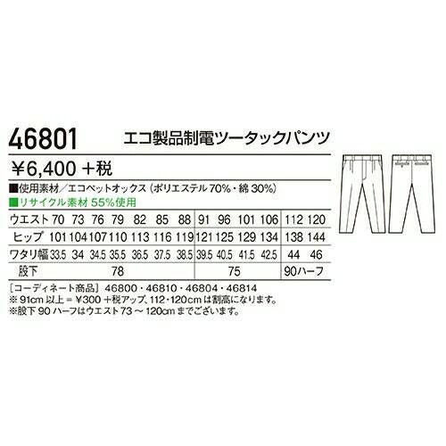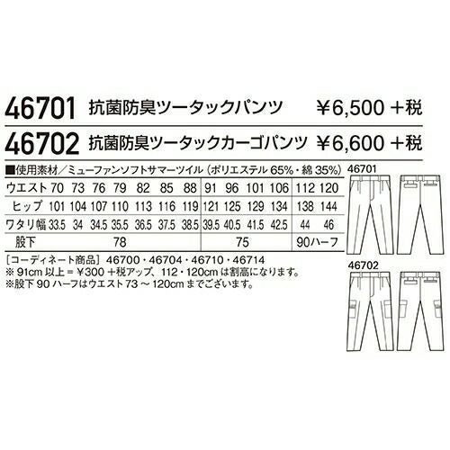 自重堂 作業服 46801 ツータックパンツ 春夏 メンズ 作業着 腿ポケット無 ボトムス ワークウエア スラックス