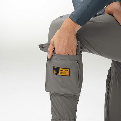 Wストレッチ性と汗キレのよい肌触りが好評のHELITEX STRETCHシリーズから腿を大きく跨ぐスランティングファスナーがエッジを効かせたスリムカーゴパンツが登場その軽やかさ、優れた伸縮性が、動きに追従してデイリーワークをサポート