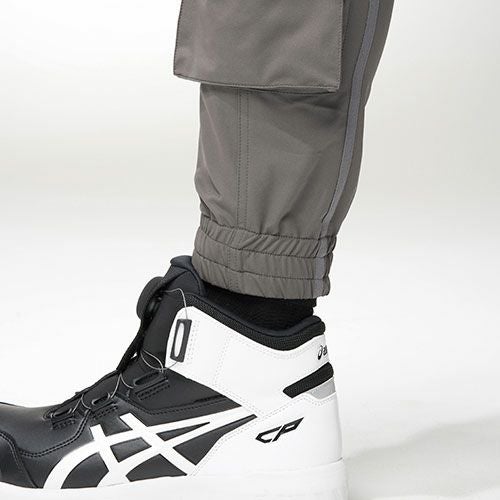 フライトギアのルーツを継ぎ、プロの声を形にした タフで誠実なワークウェアNOT JUST A TOOL. A STATEMENT.(これはただの道具ではなく、生き方の証明。)仕事に向き合う姿勢を確かな歴史と技術が支える新たなユニフォーム ジョガーシルエットで動きやすさと快適さを兼ね備えたカーゴパンツ裾はゴム仕様で足元をすっきり見せスポーティーかつアクティブな印象に仕上げています。両腿のカーゴポケットや右後ろのwポケットで収納力も充実ウエストには調整ひもを備え体型やシーンに合わせたフィット感を実現快適なストレッチ性とスタイリッシュなジョガーシルエット日常と仕事をつなぐ頼れる相棒となります。