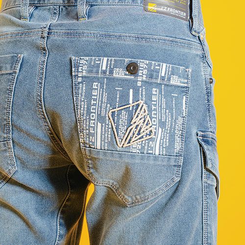 業界における唯一無二のそのルックスがシーンに新たなる完成を加えるアイスフィールワークウェアは更なる高みに ・8.2オンスの軽量素材でありながら、優れた伸長率(ヨコ約28%)と伸長回復率(1時間後ヨコ約90%)により適度なストレッチ性能を発揮。あらゆるシーンを快適にサポートすると共に型崩れを軽減します。・カジュアルテイスト漂うランダムピケ構造の新感覚デニム素材。ヨコ糸にナノレベルまで砕いた冷感鉱物を練り込む事により、素材肌面に接触冷感を有しています。・洗練された3Dカッティングでスタイリッシュなスタイリングと動き易さを両立・アイズフロンティアならではのライダース要素をちりばめたデザイン性・新感覚のプリント&刺繍加工がアクティブな存在感を発揮します。・金属ファスナー、ドット釦等は国産YKK社製を使用。細部にまで品質に拘っています。