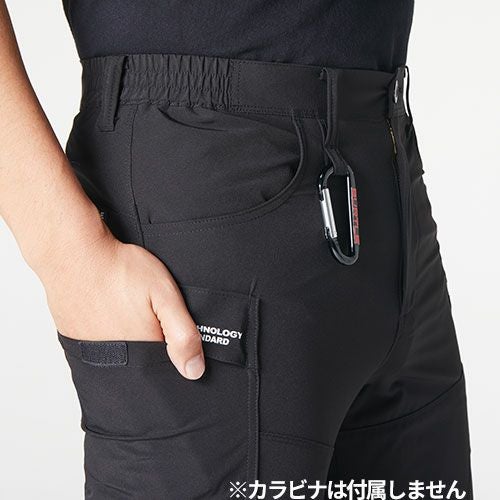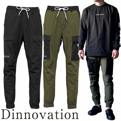 ・タテ、ヨコ方向に伸縮するストレッチ素材で着用時の動きをサポート・クールな肌触り「接触冷感素材」を採用・スポーティーに着こなせるジョガーシルエット・ウエストにゴムベルトを採用し幅広いサイズに対応・右カーゴポケットに「Dinnovation」リフレクトロゴプリント