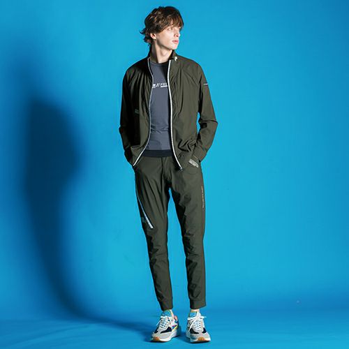 気候の変化に対応した機能素材採用のシリーズディテールにこだわり完成度を高めた機能性及びデザイン性 太もも部分やウエスト部分がゆったりとしていて裾にかけて細くなっているシルエットです。 細身でありながらも太ももまわりにはゆとりがあり、パターン設計上、動きに対して生地が引っ張らず履きやすいため、自分にあったサイズを選べば着用感抜群のストレスフリーなパンツです