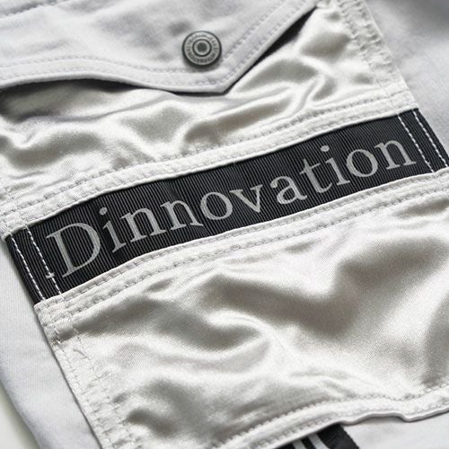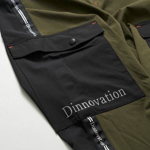 ・伸縮性と冷感を同時にあわせ持つストレッチクール素材を採用・ウエストにゴムベルトを採用し幅広いサイズ対応・反射素材を各所に配置・リフレクトプリント採用で夜間の視認性UP・スタイリッシュに着こなせ且つ柔軟性抜群なので動きが快適に・ロゴラインテープでデザインにアクセント・右ふとももにはサテン素材の大型ポケット・大型で便利なポケットを各所に配置・右カーゴポケット上に「Dinnovation」ロゴプリント