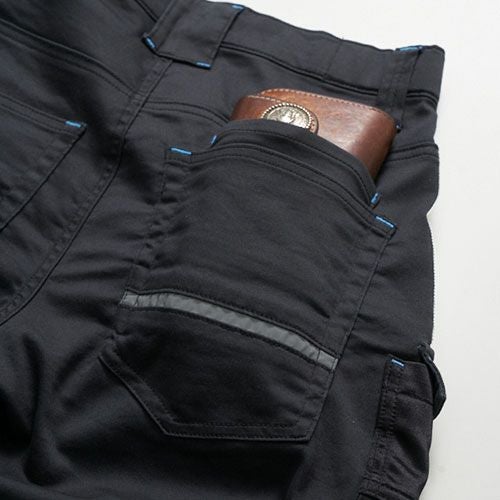 大型ポケットを配置した実用性とタテヨコ130%の超4WAYストレッチに加えUVカット UPF50+等機能も充実した動きの激しい現場でも効果を発揮するアイテム 体にアジャストするキックバックに優れた4WAYストレッチトリコットキックバックが魅力縦横130%超えストレッチにUVカット UPF50+等も兼備した動きに強いトリコット素材