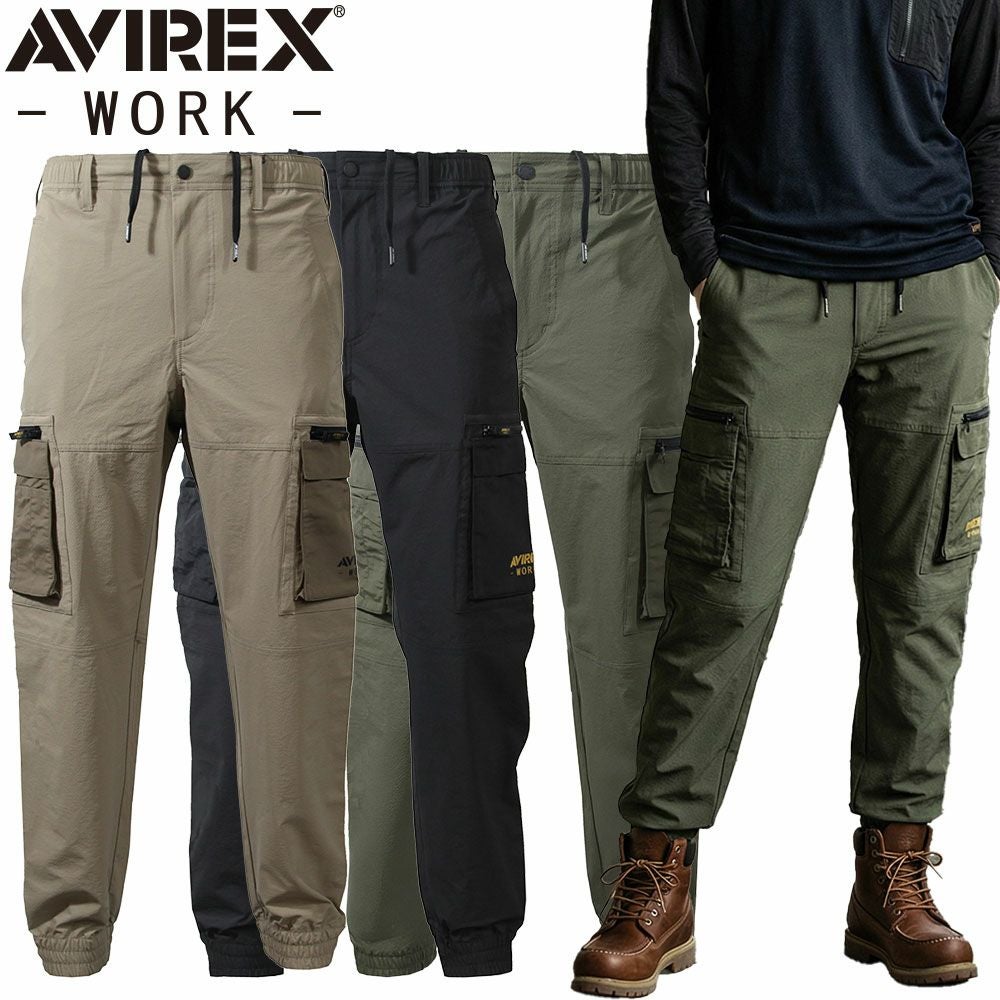 作業服 カーゴパンツ avirex アヴィレックス AVIREX WORK ジョガーカーゴパンツ 作業着 春夏 接触冷感 ストレッチ 動きやすい カッコいい 建築 建設 土木 工事 現場 農作業 アウトドア スポーツ キャンプ 登山 トレッキング ハイキング 釣り サイクリング 通勤 通学 普段使い