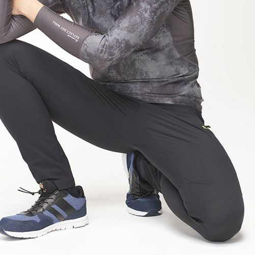 高い伸縮率と軽量性に優れたHELITEX STRETCHを使用した撥水ジョガー大きく足を広げても突っ張らないガゼットクロッチパターンを採用し履きやすさと動きやすさを追求した一本