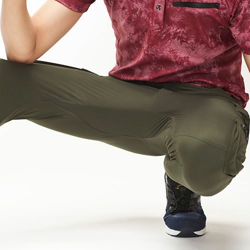 アクティブで快適なワークスタイル ヨコのびの伸縮性に優れたストレッチ素材を使用し、アクティブで快適なワークスタイルを確立。また電気・静電気などの帯電を防ぐ生地を使用した帯電防止ウェア。