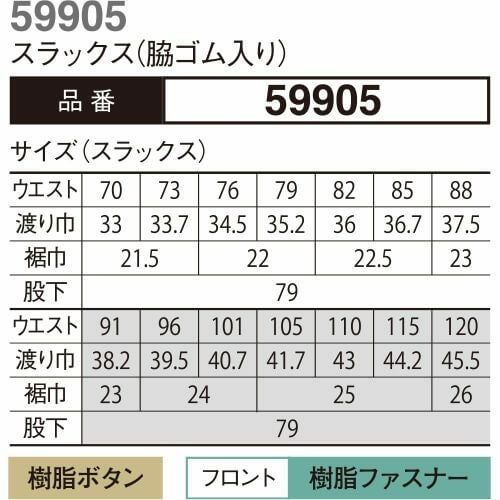 作業服 パンツ スラックス 大川被服 DAIRIKI ダイリキ スラックス(脇ゴム入り) 59905 作業着 春夏
