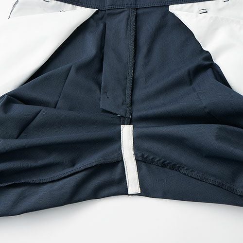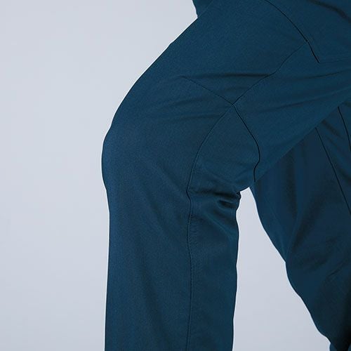 帯電防止JIS T8118適合のT/Cストレッチスラックススタイリッシュなシルエットとストレスフリーを実現膝裏切替内側にメッシュを使用、通気性を向上させ機能性も十分な納得のクオリティー! 伝統的な機能性を進化させつつ、シルエットにもこだわったT/Cストレッチシリーズ静電気対策が必要な現場でも着用できるように帯電防止JIS T8118に適合しています。ストレッチ生地をベースに、ジャケット背面にはノーフォークを、肘膝にはタックやダーツを備えることで動きやすさを向上させています。収納力についても定番のポケットの他に、ジャケットでは左胸スラッシュポケット、パンツでは右脇にファスナーポケットを備えています。またジャケット、パンツ共に背面に反射パイピングを施し暗所での安全性も確保しています。