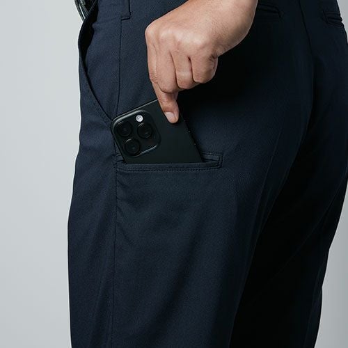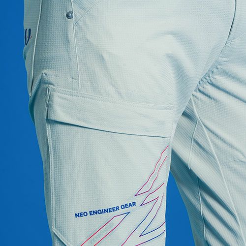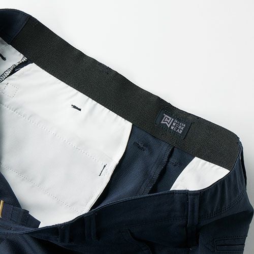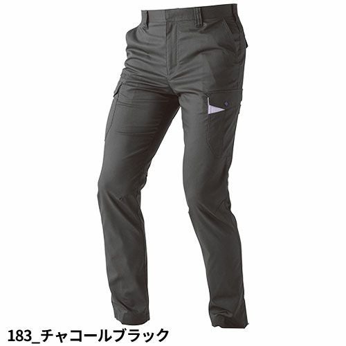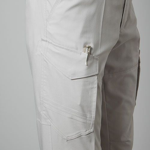 東レの植物由来合成繊維「エコディア」を使用した環境配慮型アイテム「軽い」「伸びる」「動きやすい」高機能ストレッチ素材 東レ「Lightfix」を使用 ・「軽い」「伸びる」「動きやすい」高機能ストレッチ素材 東レ「Lightfix」を使用・製品制電 JIS T-8118適合・環境負荷の少ないエコマーク認定(認定番号 24103010)、グリーン購入法適合品(作業服 基準適合)・レディース対応も充実(ダイバーシティモデル)・スタイリッシュな収納機能をプラスしたデザインパンツ・腰帯内側のゴムベルト仕様が生み出す腰回りへのフィット感