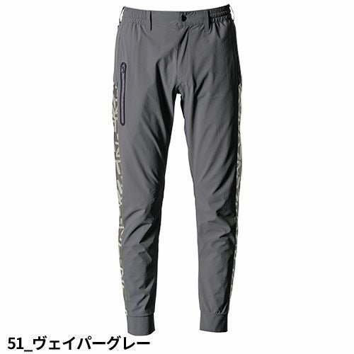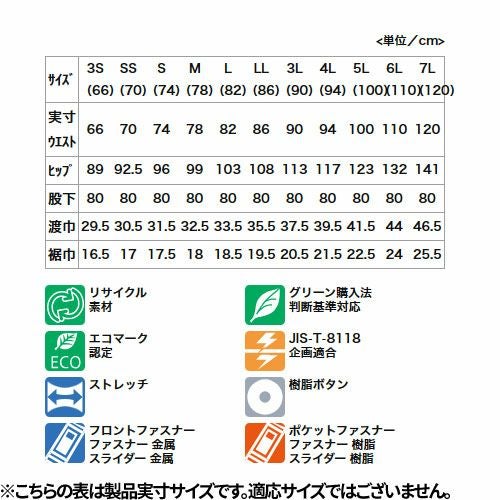 NO BORDER!境界など不要ワークシーンにとどまらないその鮮烈な世界観は様々なシーンをリッチに演出ニーズ沸騰の人気モデルが鮮やかにアップデートし登場 ■各種品質データで高い数値を叩き出した高性能モデル■ワッフル編みをアレンジした絶妙な素材構造による適度な通気性も合わせ持ちます。■特殊な異形断面糸を使用。一般基準を大きく上回る吸水速乾機能による、サラっとドライなパウダータッチが魅力■伸長率タテ約30%・ヨコ約33%、伸長回復率(1時間後)タテ約95%・ヨコ約96%を誇る優れたストレッヂ性能を発揮。ストレスのない快適な動き易さと安定感のあるシルエットキープを実現します。■綿ライクなやさしい風合いも、破裂強度(430kPa)、抗ピリング性(5級)、抗スナッグ性(4.5級以上)等高い強度を併せ持つ完成度の高い1着に仕上がっています。■遮蔽率97.6%/UPF40を誇る優れたUVカット効果■快適な作業を実現するジョガーパンツと、やや細めのシルエットでキレイなスタイリングを実現するハーフパンツの、異なる2タイプのシルエットをラインナップ■計算しつくされた様々なデコレーションプリントが唯一無二の存在感を発揮します。■スボーツフィーリングを高めるジャケットビスロンファスナーやリッチ感を演出するプリント止水ファスナー、国産YKK社製のタックボタン等を使用し、細部にまで拘りを追求