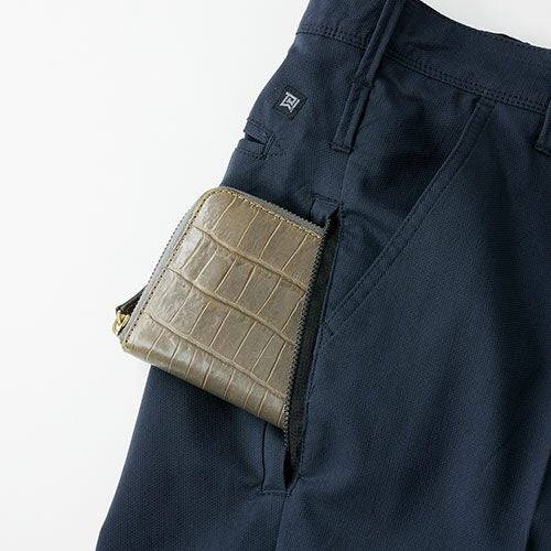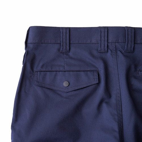 「dimo」らしいシンプルなデザインをベースに細かなディテールにこだわり見た目と機能性を併せ持ったユーティリティアイテム デザインは両脇に貼りポケットをつけたカーゴタイプですがポケットの位置を調整することで見た目をすっきりさせながら使いやすさも考慮したカーゴパンツ。現場を意識したシンプルなデザインで別注ブルゾンとの相性も良く企業向け納入案件にもオススメです。適度なストレッチ性に加え上品な光沢とシルキーな風合いで履き心地の良さと動きやすさを引出しています。洗濯を繰り返しても風合いが変わりにくく収縮も軽減されて綿が持つポテンシャルを最大限まで引き上げたハイスペック素材を使用しています。