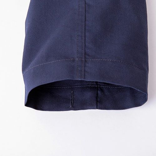 アイズフロンティアが提示するスタンダードユニフォームの新たなる解釈シンプルを極めたその研ぎ澄まされたシルエットは、多様なワーカーのスタイリッシュマインドを刺激する。 ■企業納入向けユニフォームの原点を見つめ再解釈し開発したアイズフロンティア初の本格派ユニフォームモデルが満を持して登場。多様な体形に対応するも可能な限り美しいシルエットを追求しました。■特殊な生地構造に加え横方向に高捲縮糸を採用する事による適度なストレッチ性能(伸長率ヨコ約19%・伸長回復率1時間後約93%)を有しながら、ユニフォームに重要な長期間の着用においての型崩れの少ない安定したシルエットキープを実現します(ポリウレタン糸は不使用)。■耐洗濯性においても変退色4-5級等高い染色堅牢度を有し、安定した発色性を実現します。■現代のユニフォーム市場においてニーズの高い混率のドビー織り素材を採用。独自な織り構造によりシャリ感を有し、肌面は点接触で汗ばむ季節での不快感を軽減する着用感を実現します。■一般基準の2倍以上の引裂強さ(タテ約30N・ヨコ約24N)や抗ピリング性能等、各種データにおいて高い堅牢性を測定。ハードワークにも充分に対応可能な強度を有しています。■導電糸を組み込み高い帯電防止性能を発揮。