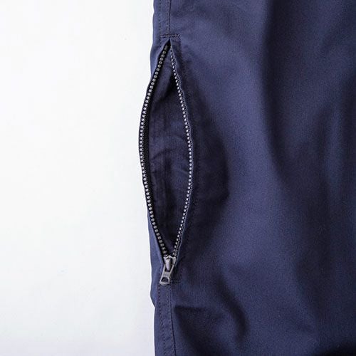 異素材が織りなす鮮やかなケミストリー全てのシーンをアクティブに演出するユーティリティーウェアの進化を体現するフラッグシップモデル登場! ■しなやかな全方向ストレッチ素材をベースに、異素材を組み合わせて誕生した抜群の快適性能を誇るスポーティーテイストユーティリティーウェア■本体素材には伸長率タテ約41%・ヨコ約29%、伸長回復率(1時間後)約90%を誇るハイレベルな全方向ストレッチ性能を有するナイロン素材を使用。ストレスフリーな動き易さを実現します。■適度にハリ感を有しながらも優しい肌触りを両立■適度な接触冷感性も併せ持ち、リッチな仲まいを発揮しながらも快適な着心地を実現します。■しなやかな風合いながらも一般基準の3倍以上を誇るハイレベルな引裂き強度(タテ約36N・ヨコ約49N)■優れた抗ピリング性能、抗スナッグ性能(全て5級)等を有し、抜群の生地強度を誇ります。■内股にはレーザー光線パンチング加工で空気穴を発現させた素材を採用し衣服内の熱を効果的に排出。加えて脇側には2種類の異なる組織のメッシュ素材を使用したダブルメッシュ構造で更なる衣服内の通気性アップを実現。汗ぱむ季節にその真価を遺憾なく発揮します。■右脚のシームテープ付き止水ファスナーポケットや後身頃の大胆なビッグロゴプリント、脇メッシュパーツヘのロゴプリント等様々なギミックを搭載し、ソフィスティケートなスポーティーなルックスを表現■タック釦やDカン、前立てファスナーにはYKK社製を使用。細部にまで品質を追求しています。