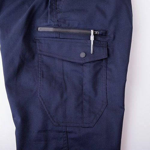帯電防止JIS T8118適合のT/Cストレッチカーゴパンツスタイリッシュなシルエットとストレスフリーを実現膝裏切替内側にメッシュを使用、通気性を向上させ機能性も十分な納得のクオリティー! 伝統的な機能性を進化させつつ、シルエットにもこだわったT/Cストレッチシリーズ静電気対策が必要な現場でも着用できるように帯電防止JIS T8118に適合しています。ストレッチ生地をベースに、ジャケット背面にはノーフォークを、肘膝にはタックやダーツを備えることで動きやすさを向上させています。収納力についても定番のポケットの他に、ジャケットでは左胸スラッシュポケット、パンツでは右脇にファスナーポケットを備えています。またジャケット、パンツ共に背面に反射パイピングを施し暗所での安全性も確保しています。