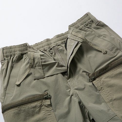 夏に便利な吸汗速乾加工と防水ポケット付き多ポケットパンツ