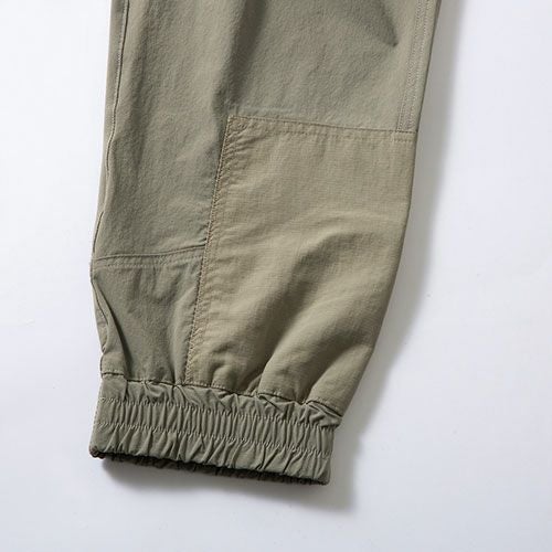 綿高混率素材とニット素材のコンビネーションでハードに使えて軽やかに動ける新感覚レギンスジョガーパンツ。膝上部分からの切り替えで、さらに動きやすさを追求