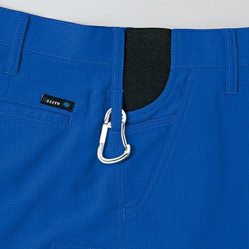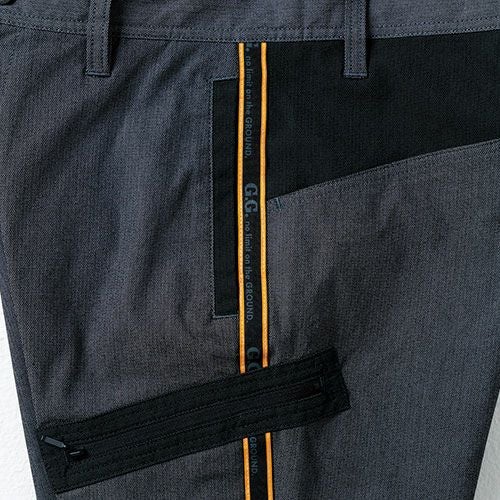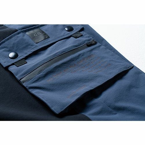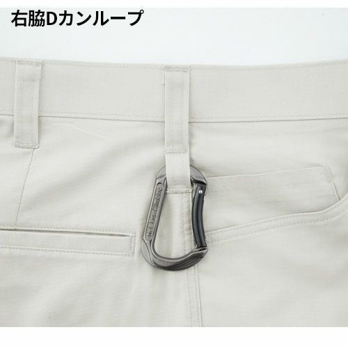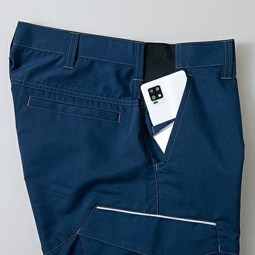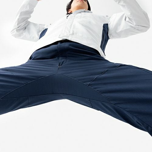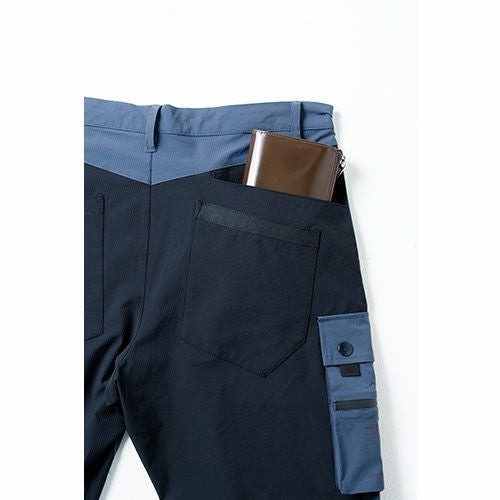 汗をかきやすい夏の現場でも新素材がべとつき防止。ストレスを感じにくい、働きやすさも考慮したシリーズです。 脚の可動域を広げる股下構造(ガゼットクロッチ)をしているので、動きやすい!右後ろマルチポケット仕様という実用性も兼ね備えています。