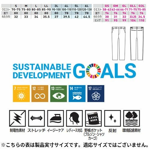 ジーベック XEBEC 1776 エコTCストレッチカーゴパンツ 通年 春夏用 動きやすい 接触冷感 作業服 作業着 作業パンツ 長ズボン 制電 速乾 吸汗 ストレッチ エコ素材 環境にやさしい エコマーク 定番 工事 土木 塗装 作業ズボン ワークパンツ 大きいサイズ
