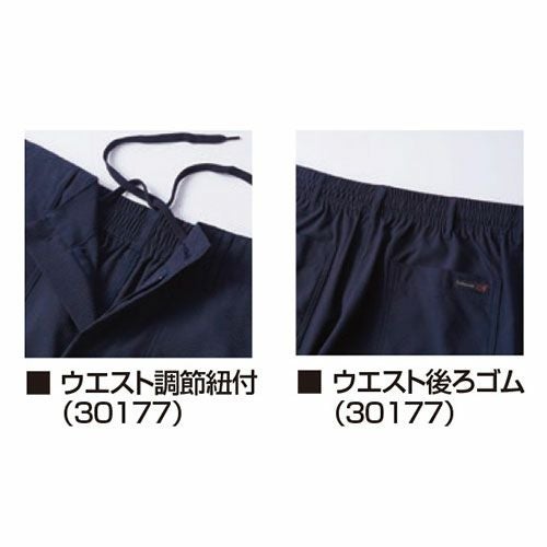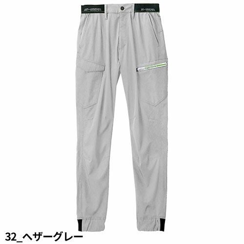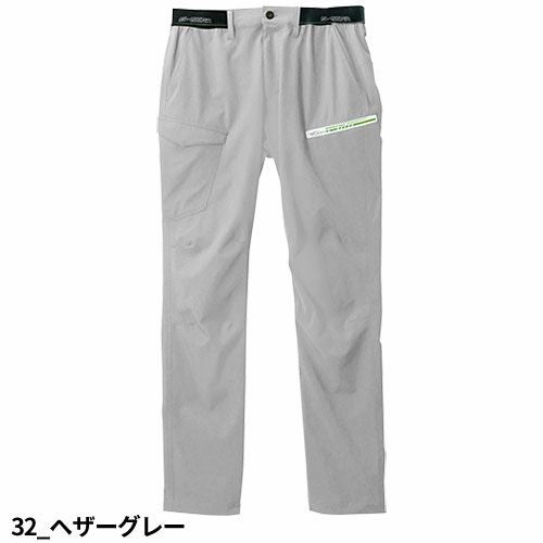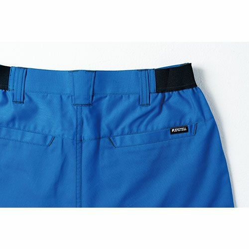 風が抜ける爽快新素材、超軽量スーパーストレッチ! 帯電防止機能にも優れたこちらの商品は、独自の繊維構造により、通気性抜群の軽量ストレッチ素材を採用しています。サイドにゴムをはさみこみ、ウエストの動きにも柔軟に対応します。遮熱性能にも優れており、JIS S35適合です。暑い時期におすすめの一着です。
