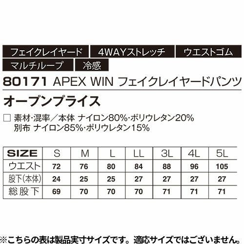 作業着 作業服 カーゴパンツ 春夏 アタックベース ATACK BASE APEX WIN 冷感フェイクレイヤードパンツ 80171 作業着 春夏 ストレッチ 速乾 接触冷感