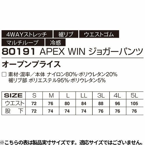 作業着 作業服 カーゴパンツ 春夏 アタックベース ATACK BASE APEX WIN 冷感ジョガーパンツ 80191 作業着 春夏 ストレッチ 速乾 接触冷感