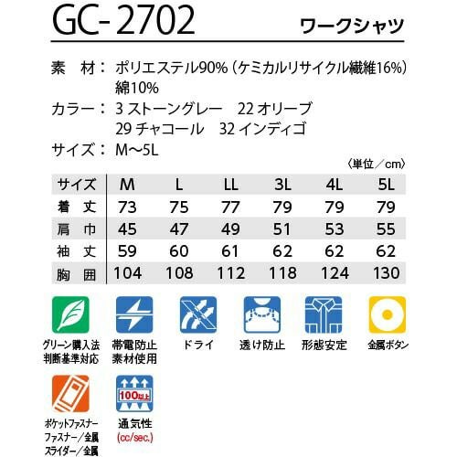 他の画像を見る 作業服 長袖シャツ タカヤ商事 TAKAYA グランシスコ ワークシャツ GC-2702 作業着 春夏作業着 作業服 長袖シャツ 春夏 特別価格 ¥ 5,137 税込 〜 特別価格 ¥ 税込 驚異の通気性とファッション性を両立。猛暑に立ち向かう進化系ワークウェア!! 暑熱環境下における活動では、熱を吸収したり保熱しやすい服装は、熱中症発生のリスクを上昇させます。吸汗速乾性能だけでは酷暑の現場での身体への負荷はなかなか軽減されません。できるだけ熱放射性を高めるために「高通気性」の衣服を着用し、体温の練滑な調節を助けるように工夫することが重要です。GC2700シリーズは先進のハイテクファブリックによって織物でありながらニット並みの通気性を実現した、夏を乗り切るクールウェアです。 詳細を見る お気に入りに登録する