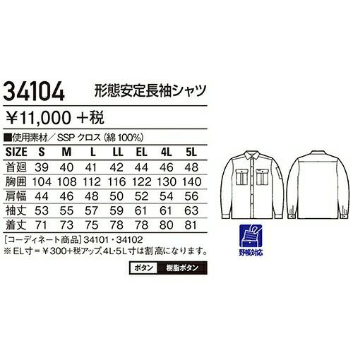 自重堂 DESK-WJ 作業服 34104 長袖シャツ 春夏 メンズ 作業着 長袖 ワークウエア ワークシャツ