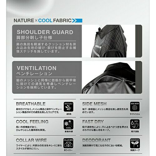激涼クールボディ! 優しく柔らかな風合いのコットンと汗の吸収・拡散に優れたポリエステルの二重構造という新素材の採用でサラッとした爽やかな着心地を実現。「さわやかな汗」にこだわったクール&ドライの着心地で炎天下でのハードワークから工場作業までサポートします。