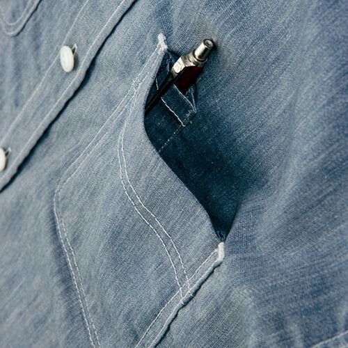 爽やかに夏のワークシーンを彩る杢調ダンガリースタイルUV機能や遮熱効果があり、吸汗速乾にも優れた高機能ウェア 杢調の風合いでオーセンティックな雰囲気にまとめたワークシャツ馴染み良い風合いと、こだわりの左袖ペン差しも仕事服としての魅力のひとつ使用されているペンタスライトフィックスは、着心地の良いストレッチ素材PentasUFの日傘効果は紫外線遮蔽率95%以上