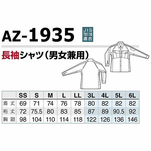 作業服 長袖シャツ AITOZ アイトス エコワーカー・ストレッチ 男女兼用 AZ-1935 作業着 春夏 帯電防止 エコ商品 軽量 反射 ストレッチ シャツ 長袖 春夏 メンズ レディース ワークウェア
