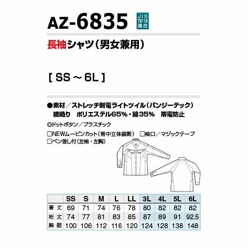 作業服 長袖シャツ AITOZ アイトス フルハーネス対応ムービンカット長袖シャツ 男女兼用 AZ-6836 作業着 春夏 帯電防止 動きやすい 反射材 ストレッチ シャツ 長袖 春夏 メンズ レディース ワークウェア