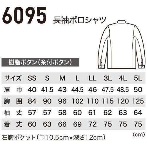 作業服 ポロシャツ 長袖 ジーベック XEBEC エコ制電長袖ポロシャツ 6095 作業着 春夏 帯電防止 リサイクル 速乾 吸汗 消臭 抗菌防臭
