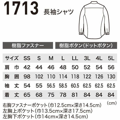 作業服 長袖シャツ ジーベック XEBEC TCストレッチ長袖シャツ 1713 作業着 春夏 ストレッチ 帯電防止