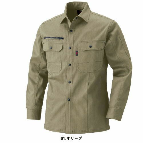 普遍的なシルエットのロングセラー商品!防縮、防シワ加工の綿100%素材を使用した定番作業服!! ・肌触りが良く吸湿性のある綿100%素材・火を扱う現場にも対応した仕様・サンフォライズ加工により生地の縮みを軽減