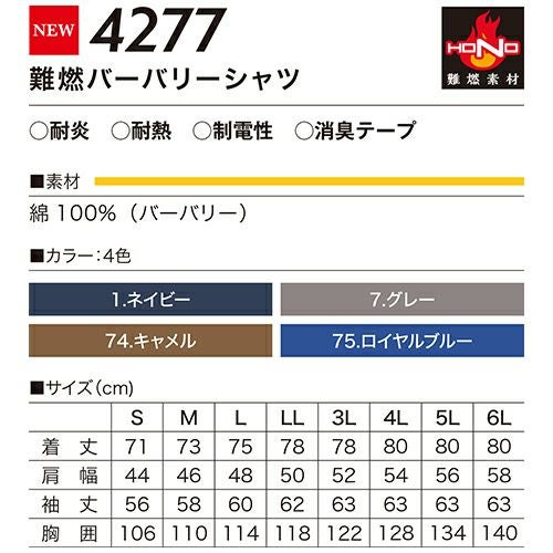 他の画像を見る 薄手シャツ カーゴパンツ 上下セット セットアップ 4277 4204 村上被服 鳳皇 HOOH HONO 作業服 作業着 トップス パンツ ズボン 長袖 綿100 コットン 春夏 難燃 燃えにくい 耐炎 耐熱 溶接 工場 ユニフォーム メンズ おしゃれ かっこいい ワーク ウェア アウトドア バーベキュー JIS規格適合 ISO規格適合 特別価格 ¥ 11,080 税込 〜 特別価格 ¥ 税込 HONOブランドの難燃(防炎)シャツは、耐炎・耐熱・静電性に優れた、やわらかく肌触りのよい難燃(防炎)素材を採用! 日本防炎協会が定める耐炎・耐熱・帯電基準をクリア―した安全性。火を扱う溶接作業や工場、作業現場など働く人を安全にサポートする、燃えにくい夏用綿100%素材の難燃作業着です。 詳細を見る お気に入りに登録する