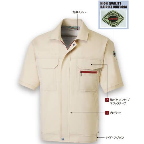 作業服 半袖シャツ 大川被服 DAIRIKI ダイリキ 07003 作業着 春夏 半袖