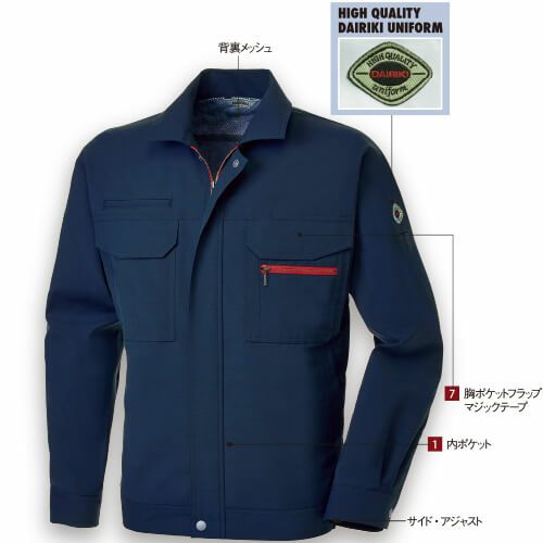 作業服 ブルゾン 大川被服 DAIRIKI ダイリキ 長袖ブルゾン 07002 作業着 春夏