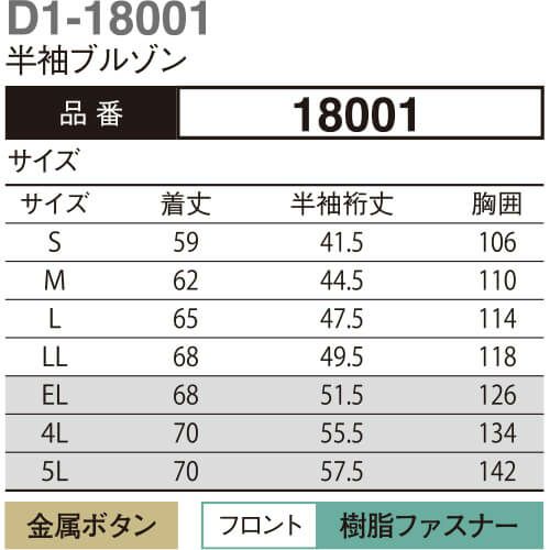 作業服 ブルゾン 大川被服 DAIRIKI ダイリキ D1-18001 半袖ブルゾン 18001 作業着 春夏