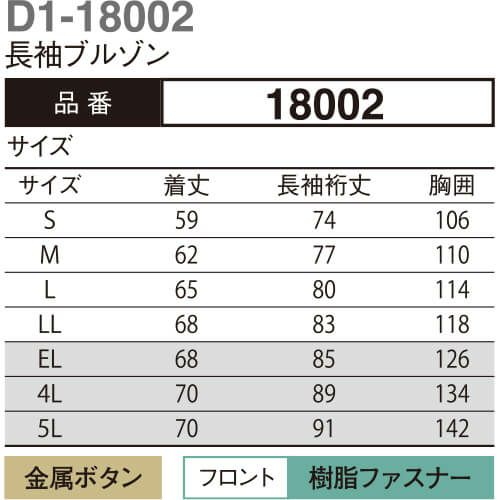 作業服 ブルゾン 大川被服 DAIRIKI ダイリキ D1-18002 長袖ブルゾン 18002 作業着 春夏