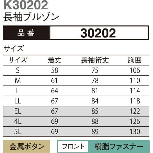 作業服 ブルゾン 大川被服 kansai uniform カンサイユニフォーム K30202 長袖ブルゾン 30202 作業着 春夏