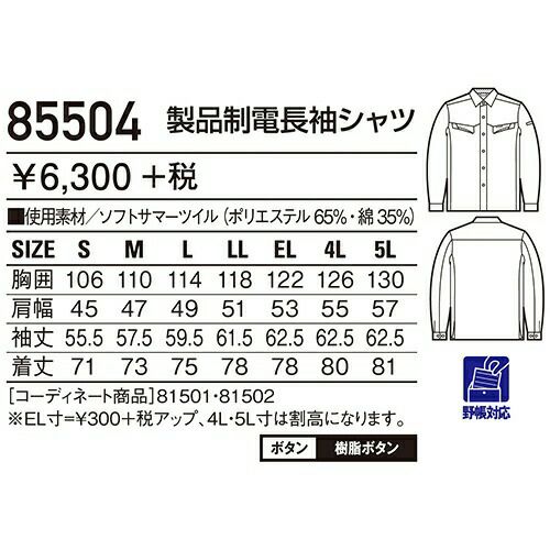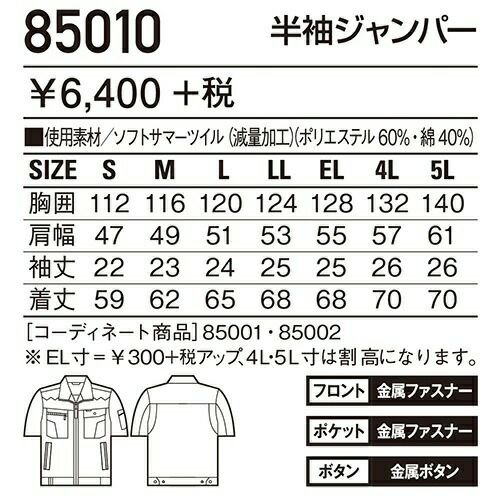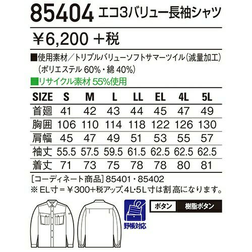 ボタンやファスナー等の突起物の露出をなくした 安全設計の男女ペアユニフォーム。 「製品制電」、「ストレッチ」、「消臭&抗菌」機能を装備した リーズナブルなユニフォーム。