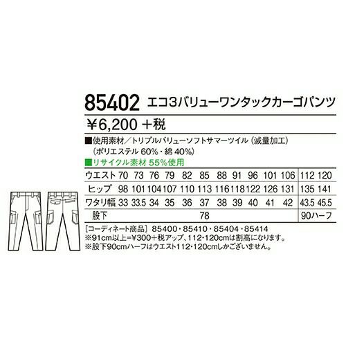 自重堂 作業服 85602 ワンタックカーゴ 春夏 メンズ 作業着 ポケット付き ボトムス ワークウエア カーゴパンツ