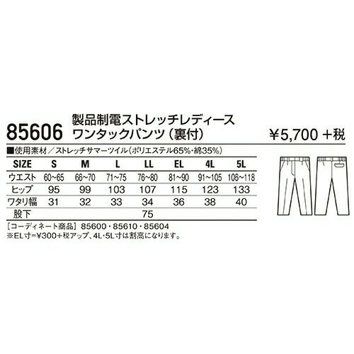 自重堂 作業服 85606 ワンタックパンツ 春夏 レディース 作業着 ボトムス ワークウエア レディースパンツ