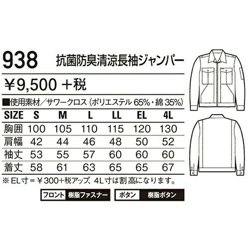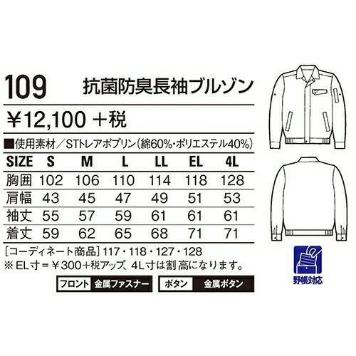 自重堂 DESK-WJ 作業服 109 長袖ブルゾン 春夏 メンズ 作業着 ワークウエア ブルゾン