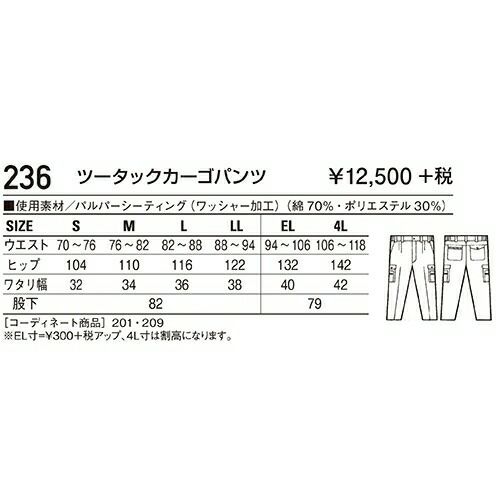 自重堂 DESK-WJ 作業服 236 ツータックカーゴ 春夏 メンズ 作業着 ポケット付き ボトムス カーゴパンツ