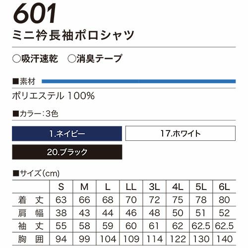 左袖にペン差し、右袖にロゴワッペン付き。機能的なミニ衿長袖ポロシャツ。