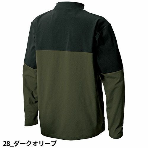 ポリエステル100%ながら肌触りが綿のようなソフトな素材とアクセントを効かせたデザインで幅広いシーンで使えるカジュアルワークアイテム