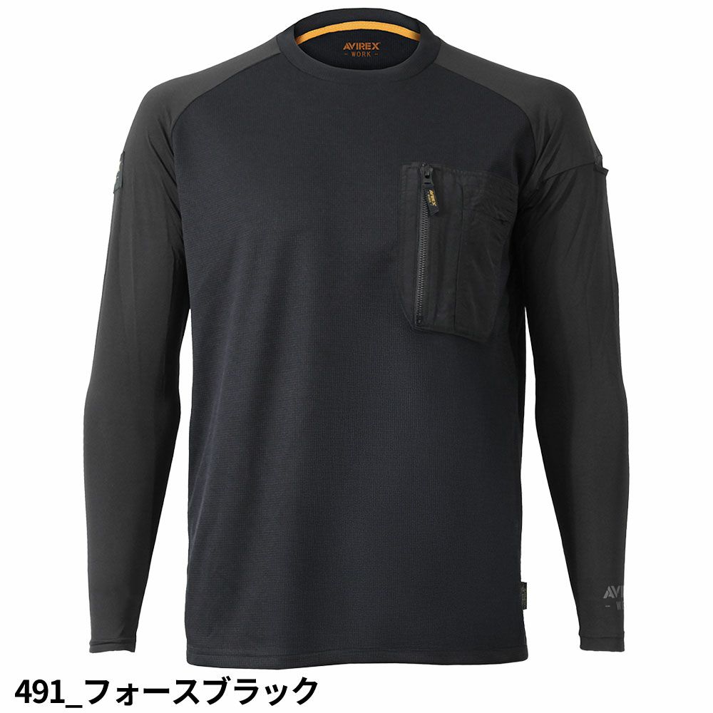 Tシャツ 長袖 avirex アヴィレックス AVIREX WORK ハイブリッドTシャツ 長袖Tシャツ 接触冷感 ストレッチ 消臭 左胸ポケット カッコいい 建築 建設 土木 工事 現場 農作業 アウトドア スポーツ キャンプ 登山 トレッキング ハイキング 釣り サイクリング 通勤 通学 普段使い